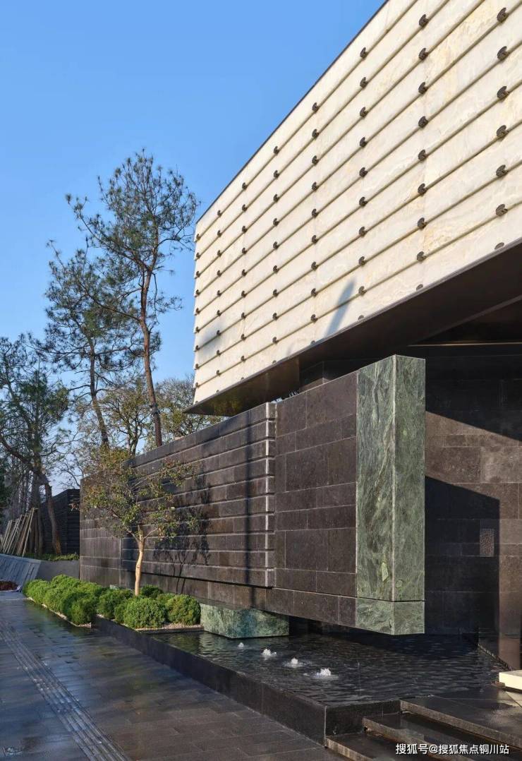 结合在地文化“莲湖如玉”的美好寓意,义乌凤栖逸庐主入口门头以池间璞玉为灵感,通过白玉、墨玉、青玉三种灵玉搭配,实现古代玉琮礼序的当代转译,错落有致,极具美感。