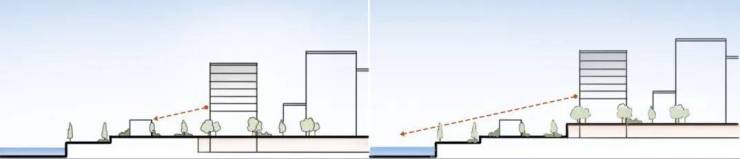 住宅所在地块较外围城市道路抬高了约6米,视线不再受南侧、西侧办公区的阻隔,即便是低层单位也能拥有更好的观海视野。同时,抬高的地势能有效避免地库倒灌,起到良好的防风隔潮效果;住宅区的私密性也得到保障,真正做到远离城市喧嚣,安享静谧私屿。