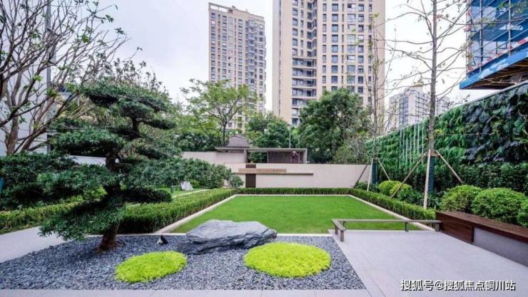 二进园,蜿蜒的迎宾景观动线,构成「出则繁华,入则宁静」的生活场景,以精致构景,别有一番风韵。再加上专门设置了长椅,无论是散步后的小憩、邻里的交流分享,还是观赏美景时的驻足,都能满足。
