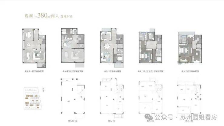约380㎡5房4卫,拥有地下2层+全套房+三楼整层套房等超多亮点,关键总价也相对“亲民”,堪称狮山终改家庭上车别墅的“入门款”!