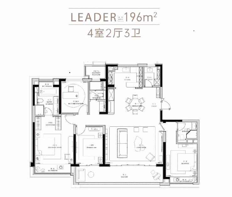再搭配上建面约196㎡户型设计,打开住宅的横向、纵向双重空间,拥有更舒适的居住空间。