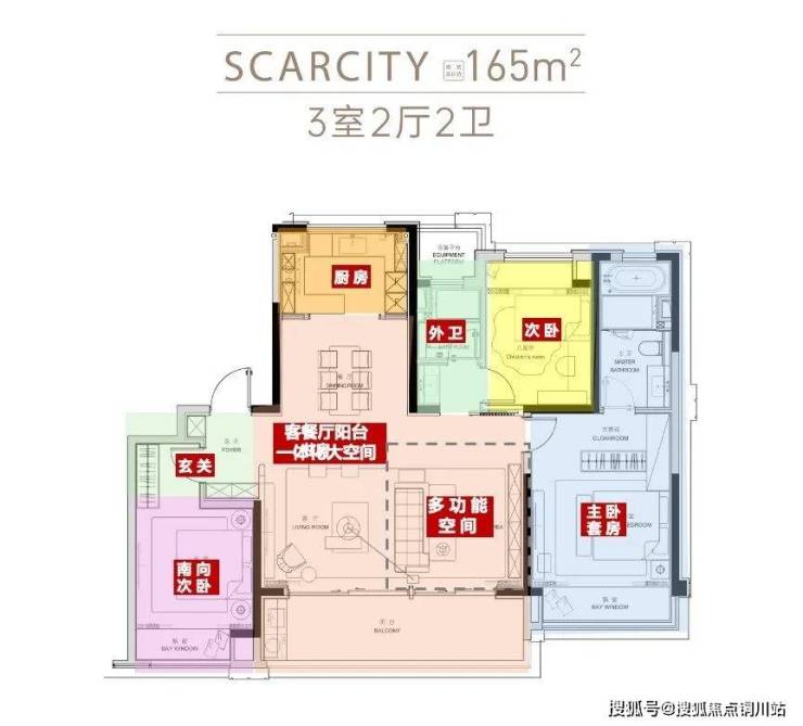 建面约165㎡户型三房两厅两卫设计,大三房+多功能空间+大面宽设计,可以充分发挥户型空间与尺度的想象力,满足不同家庭结构成员的需求。这个户型够通透、够大气、够改善。