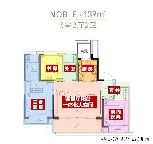 建面约139㎡户型三房两厅两卫设计,户型方正,大开间与层高的科学比例,横厅超大阳台+南向两个卧室飘窗,足够南向面宽让整个室内可以获得丰富采光。