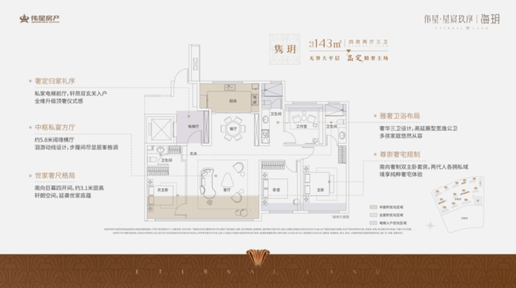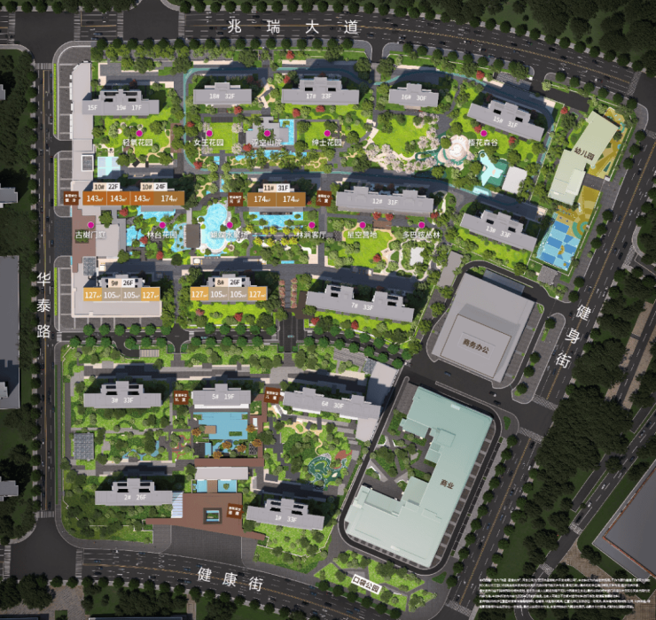 层高:约3米层高(建面约105㎡、127㎡)、约3.1米层高(建面约143㎡、174㎡)