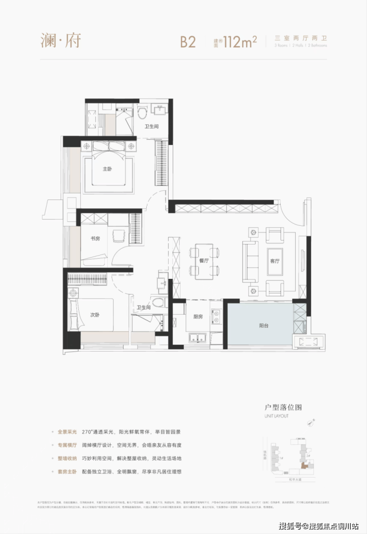 项目首开A-1地块为小户型,为整体三面宽,拥有双面宽阳台,空间利用率高。所有户型均赠送飘窗,功能分区明确,景观视线优越。