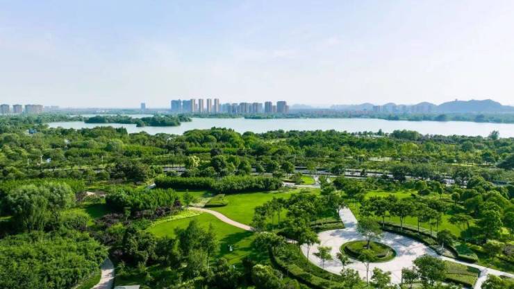 从11楼望去,天高云阔、湖景如境 ,氤氲绿意......铺开金融集聚区的景观视野。