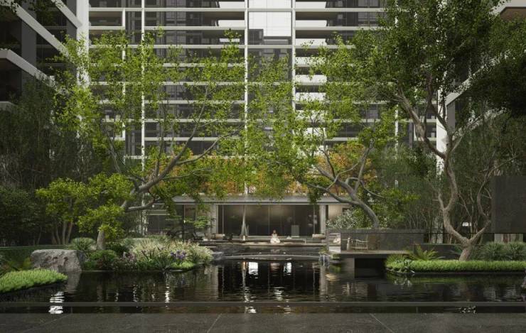 景观标杆 —— 双水环绕、内外双园:白荡河及其支流将中吴江南春环抱其中,形成双水环绕的天然优势。项目以 “千里江山图” 入境,汲取江南山水的文化意境,沿 “三轴十二境” 铺展园林景观,同时西侧未来还将新增一座体育运动主题沿河公园。