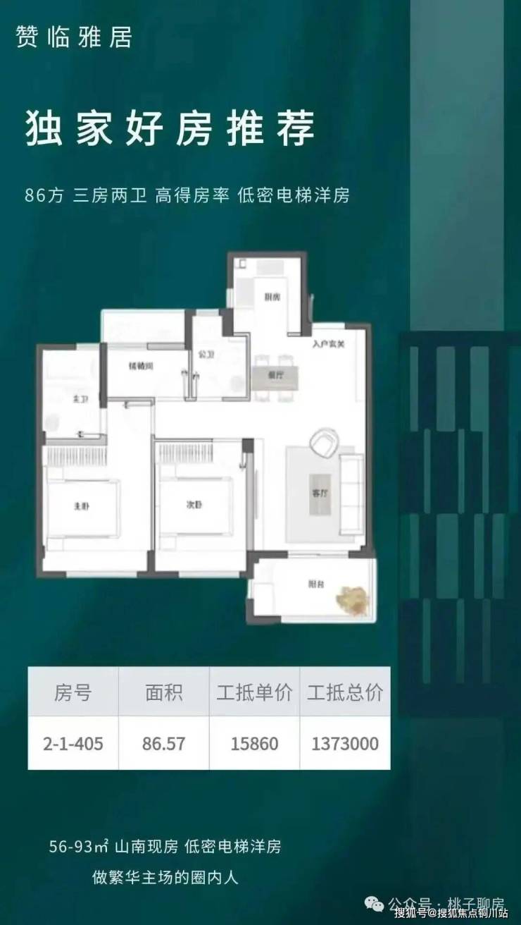 - 房型:涵盖56平方米、86平方米和93平方米的小洋房,共3幢多层建筑
