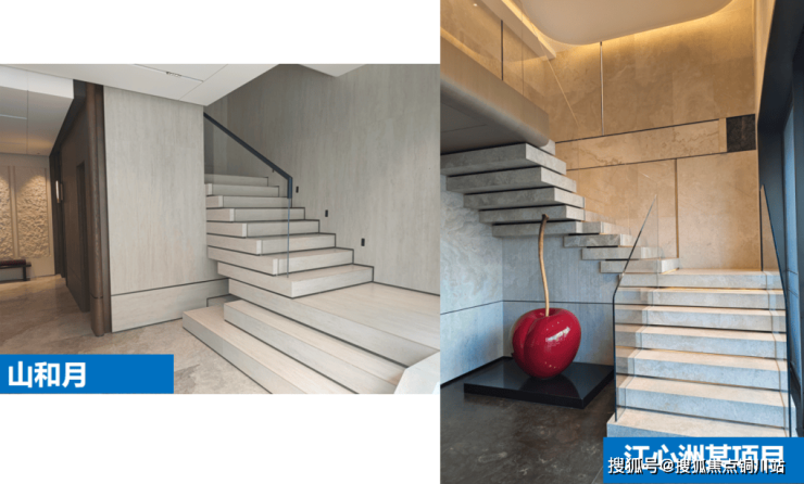 再看,哪怕是楼盘的公共区域的楼梯,山和月都要抄袭(但是显然楼梯布局真的看着相对不高级)根本没有自己的审美意识。
