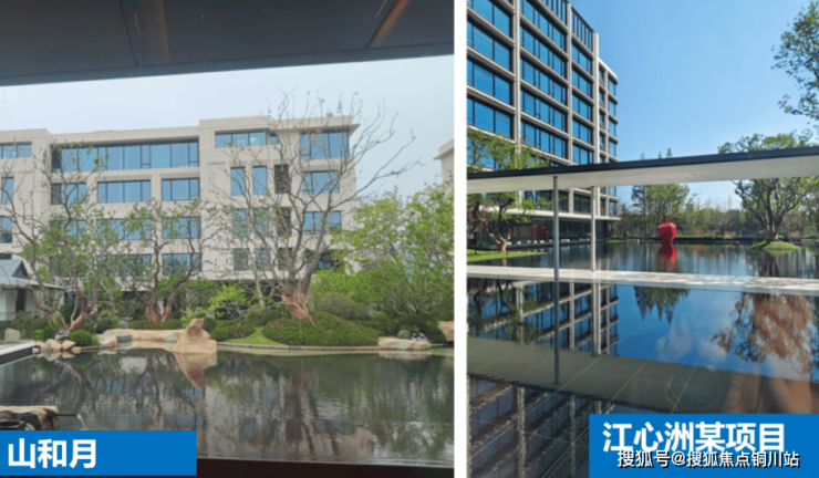 先来看网上经常晒的山和月镜面美图,去年在江心洲某项目早就用上了——