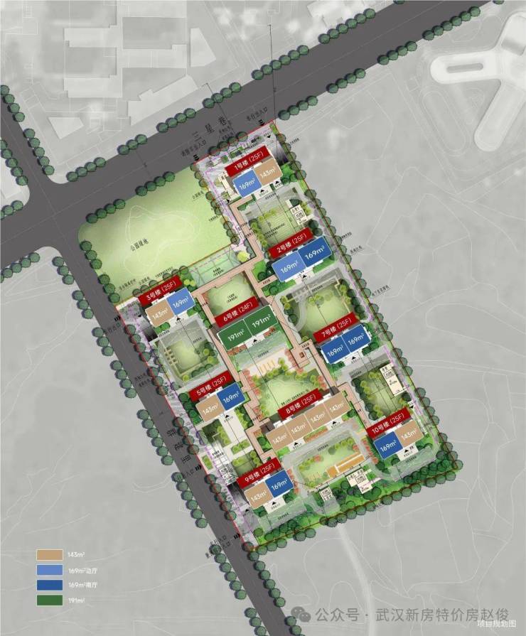 ——建筑示意图【内外双园】绿境漫藏·门口约5300㎡汉韵公园,让您在家门口可漫步运动赏景,释放身心活力,独享私家“后花园”;·园区内拥有“一园七境”社区园林、“下沉式庭院会所”、“8大架空层会所”等多维山水雅集空间体验,享静谧诗意生活;