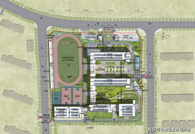 学校拟建设教学楼、报告厅、风雨操场、地下车库等,配套建设室外环形塑胶跑道、篮球场、绿化景观等设施。