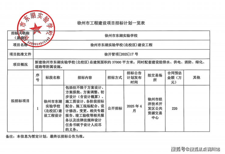 近日,徐州市公共资源交易平台发布《徐州市东湖实验学校(北校区)建设工程设计》,预示着徐州市东湖实验学校(北校区)建设被提上日程。