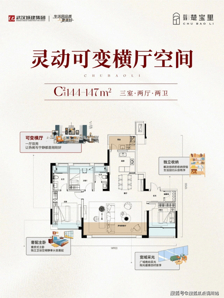 以建面约144-147㎡户型样板间为例,空间美学与功能实用性实现极致平衡: