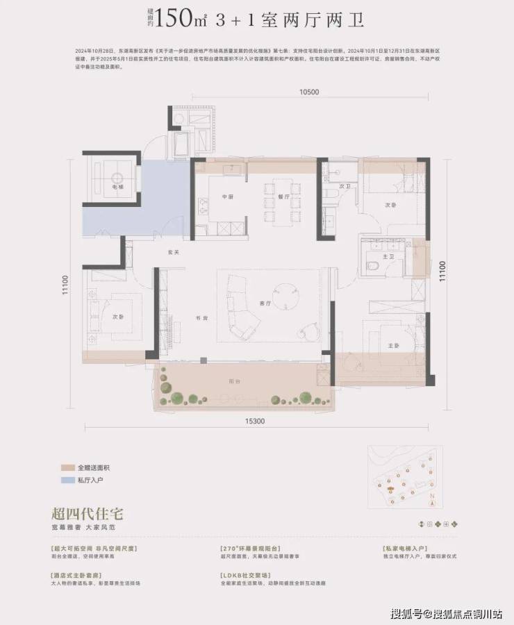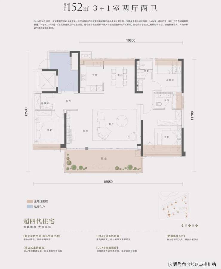 约40-50㎡赠送空间全部纳入套内实得,实现 105%+逆天得房率。