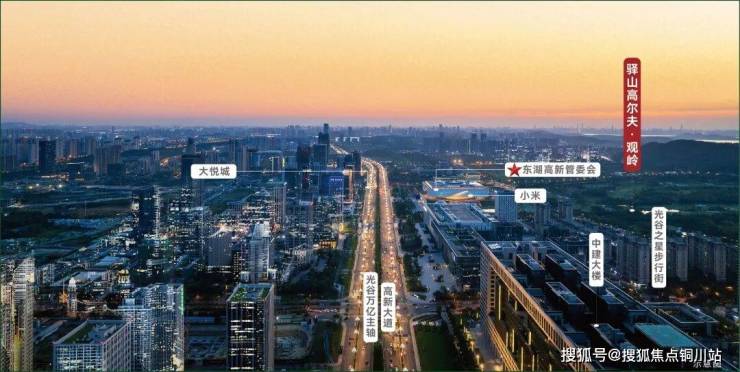 举目远眺,华为、小米总部地标群与湖北省科技新馆、会展中心等城市级配套,在果岭地平线上勾勒出现代都市的璀璨天际线。