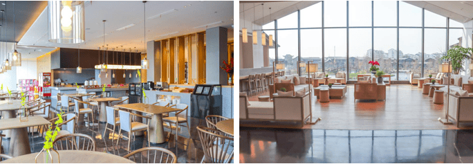 酒店客房绝大多数临水,而且还配备了3个特色餐厅、2个健身房、3个会议室,以及酒吧、书吧、儿童活动室等。