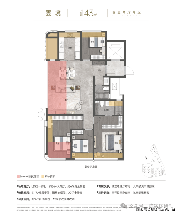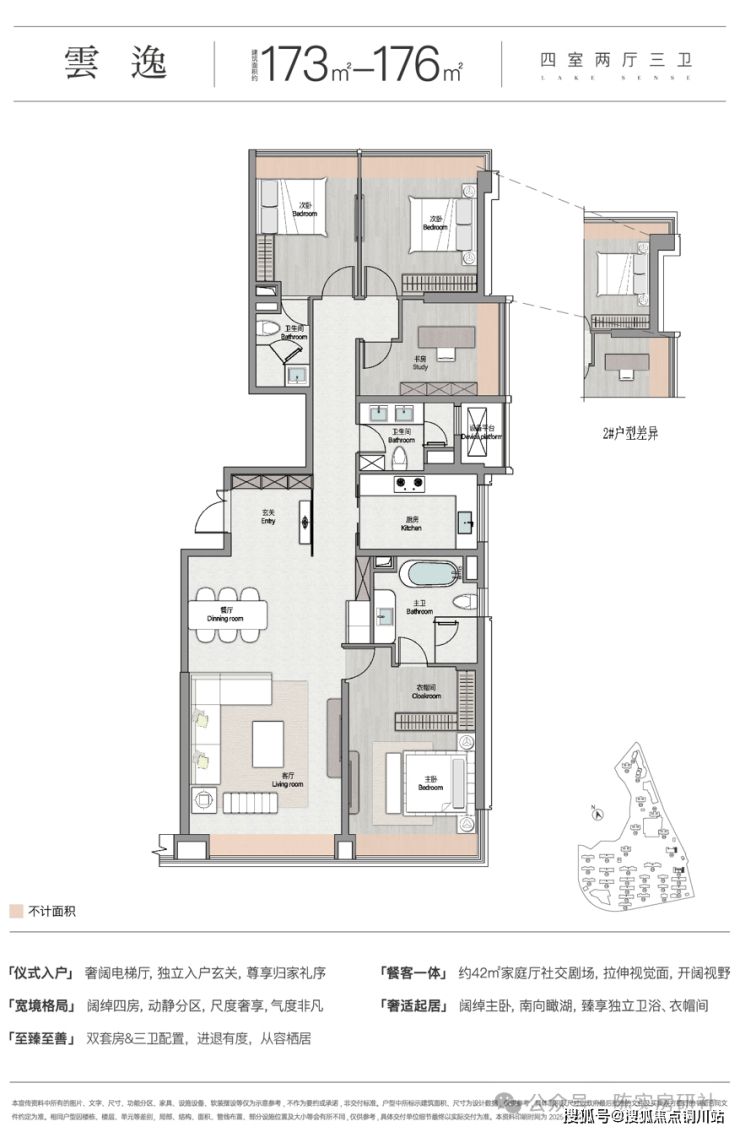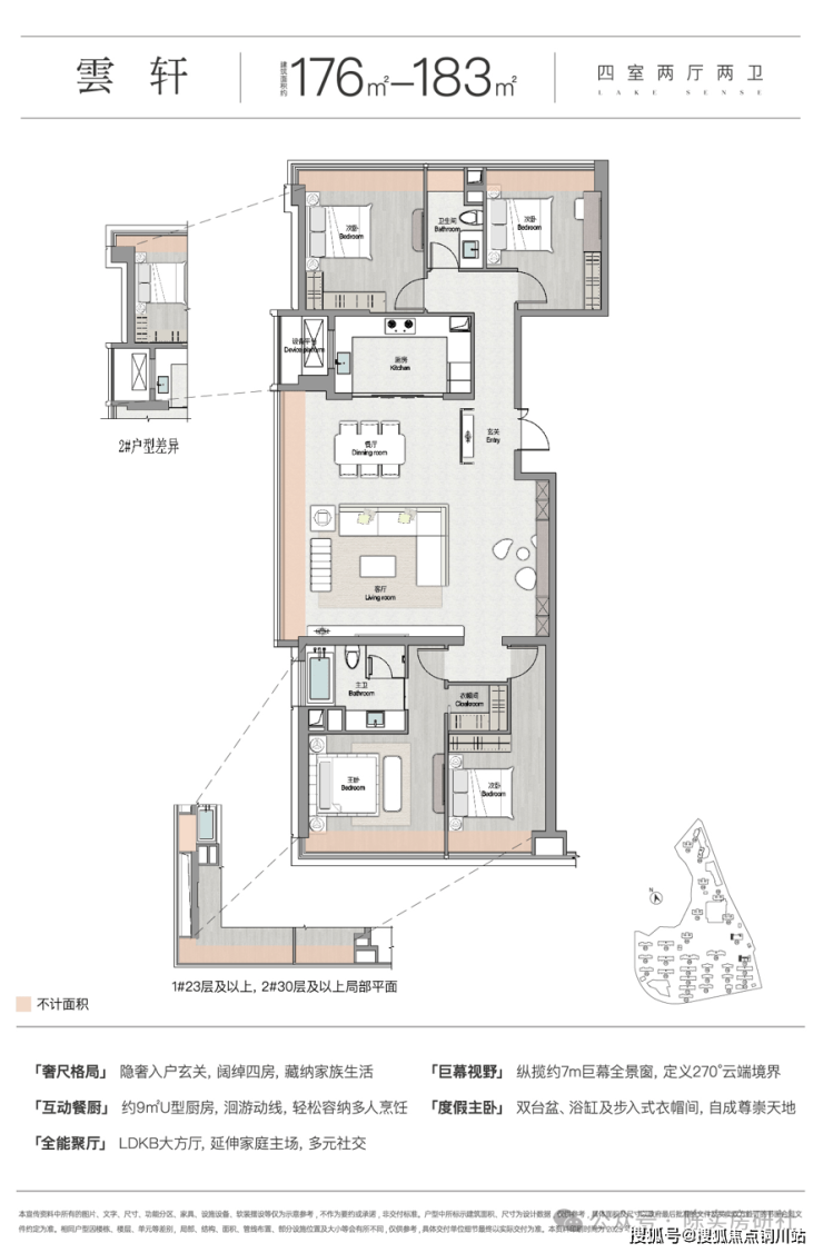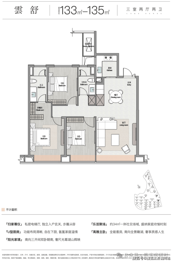 设置13栋高层、12栋洋房、7栋叠墅,高层户型建面约108-137平,洋房户型建面约138-167平,还配置有少量220平一线临湖叠墅产品。