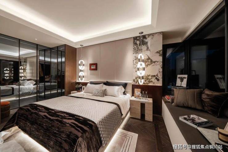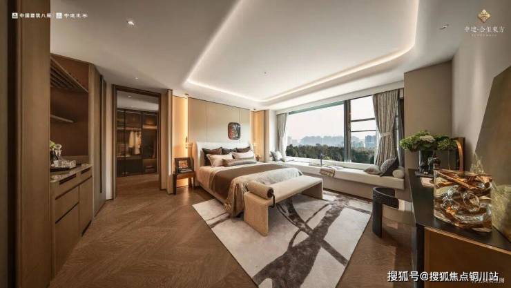 为优化主卧格局,中建·合玺东方190㎡的「鎏光」重新规划入口,“扩容了”衣帽间,满足男女主人不同季节衣物的归置需求;临窗处,设置独立景观浴缸,在私属时光里,让身心在光影交融中得到彻底放松。