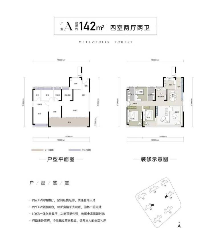 别看只有142平,室内各个空间尺度完全不输建面约170+平的大平层!