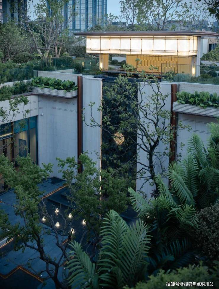 下沉式庭院中,蓝翡翠奢石流水墙光影灵动;三棵约9米高的 “乌桕王”,树冠层叠,与海派美学诗意对话。