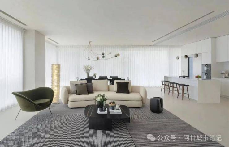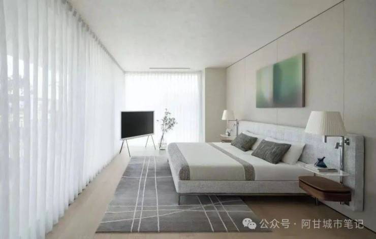 4、世界级豪宅的样板间:看样板间,需要验资1000万,几张照片,大家欣赏一下,看过等于去过。样板间跟他的设计理念高度契合,“少即是多”的极简主义,强调通过阳光和自然元素提升空间质感,注重传统与现代材料的融合。