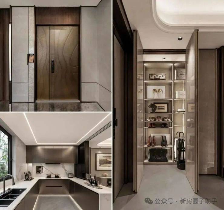 装修品味和工艺水准是更重要的检验维度。约2.4米高端定制大门,入户800库玄关柜,皇家白玉石材背景墙,定制人字拼实木复合地板,还有,方太当红款智能油烟机Y9,顶奢酒店四分离卫浴等,所有这些,高端改善更能识别。