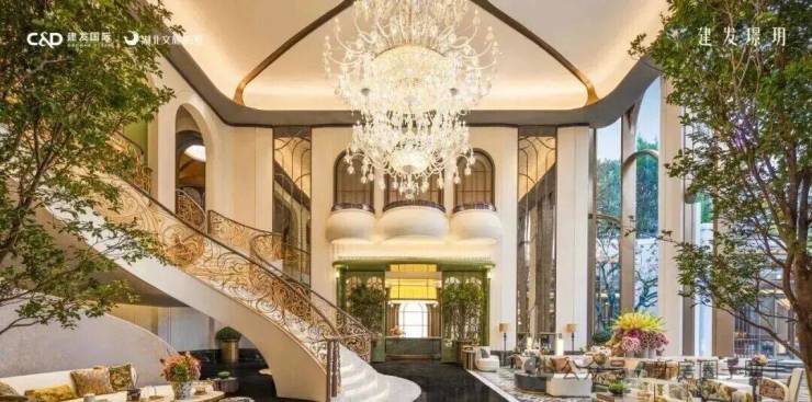 酒店式环岛落客区已不少见,不过,与顶奢酒店同款的奢华穹顶,以及高端定制的金镶玉雕塑,则属于妥妥的豪宅符号了。