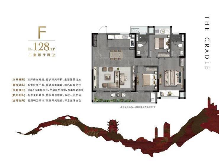 建面约117㎡/128㎡(两梯三户)