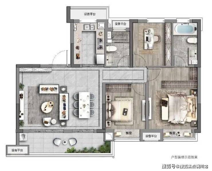 如果预算充足,东腾璟庭还有极少量的建面约118㎡户型,堪称“王炸”。