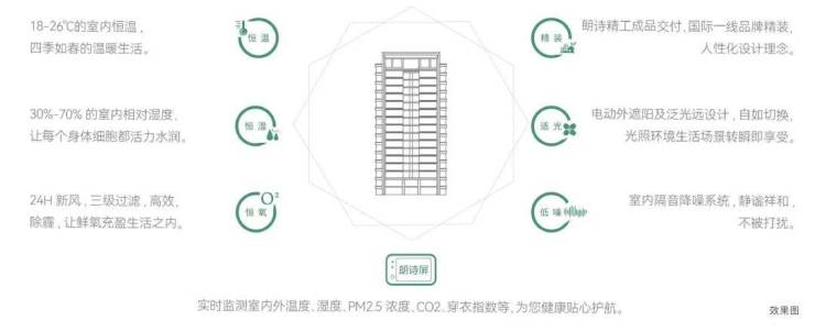 建面约123-216㎡精装科技华宅,于全球范围内甄选高品质精装品牌,同时围绕“恒温,恒湿,恒氧,低噪,适光”五大健康理念,以十大核心科技系统为辅,为居者打造最前沿的舒适智慧家。