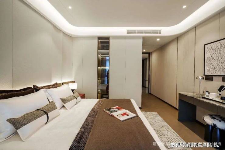 譬如,在『臻萃』海派样板间,客厅“芬迪白”转角奢石,坚持选择更高成本和难度的弧形工艺,只为呈现更优雅、生动的视觉观感;主卧定制Mini Bar ,供存放茶水、藏酒、小食等,还原酒店行政套房的奢居质感,甚至还贴心地将走入式衣帽间靠近床侧的柜体局部打通,便于取用衣物。