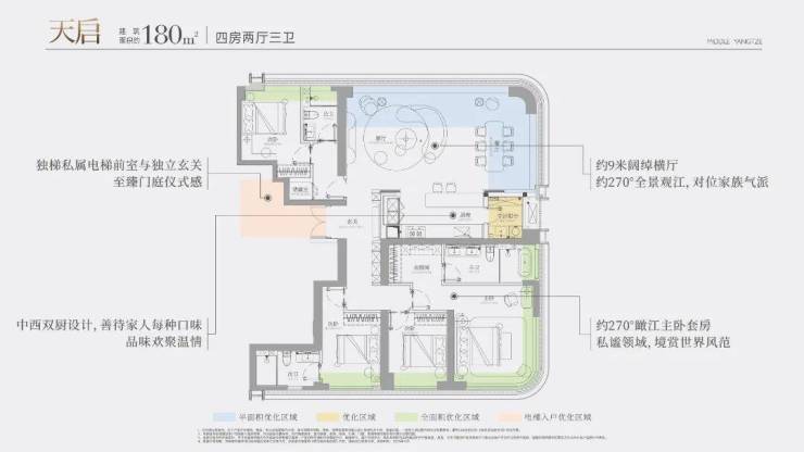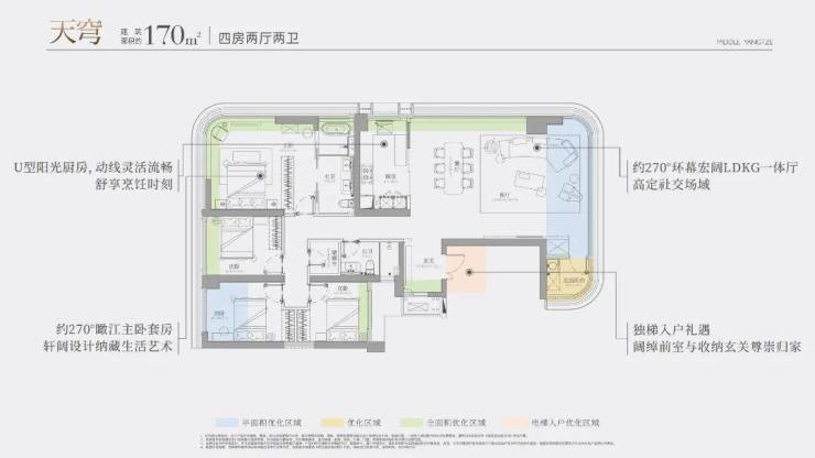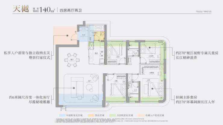 更值得一提的是其270°环幕视野设计。与传统江景住宅将视野局限于客厅主沙发或主卧飘窗不同,长江天元让江景成为生活的背景板。无论是家庭聚餐、朋友聚会,还是日常休憩,长江的壮美始终如影随形。这种“身在其中,江在四周”的沉浸式体验,真正实现了生活与自然的无缝融合。