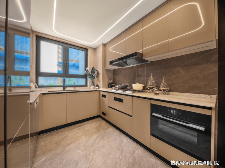 北向房间的窗帘时常摆动,或许是与八百年前某扇花窗通了灵犀。U型厨房的蒸汽无需刻意蓬勃,于烟火气中可见国际品质。全屋精装选用一线品牌,让奢华的质感隐于日常的肌理。