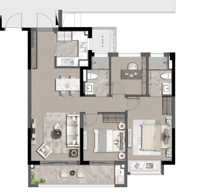 建面约106㎡户型,更凭借方正空间格局、三房两卫布局、套房式主卧、约6.45米南向阳台等亮点,在当天收获赞誉无数,是许多客户心中的理想之选,更是当之无愧的“明星户型”。未来的品质人居生活,在这里有了具象的表达。