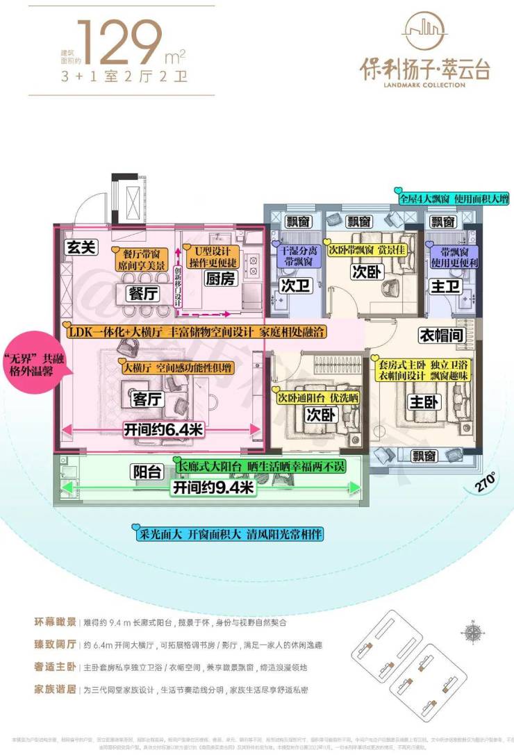 项目主推建面约105-142㎡的三、四房,层高约3.05米起(建面约142㎡小高层层高达到河西大平层的约3.15米),都是南向大面宽+LDK一体化设计,大开间落地窗阳台,尺度阔绰。多飘窗设计,给业主不花钱的浪漫!