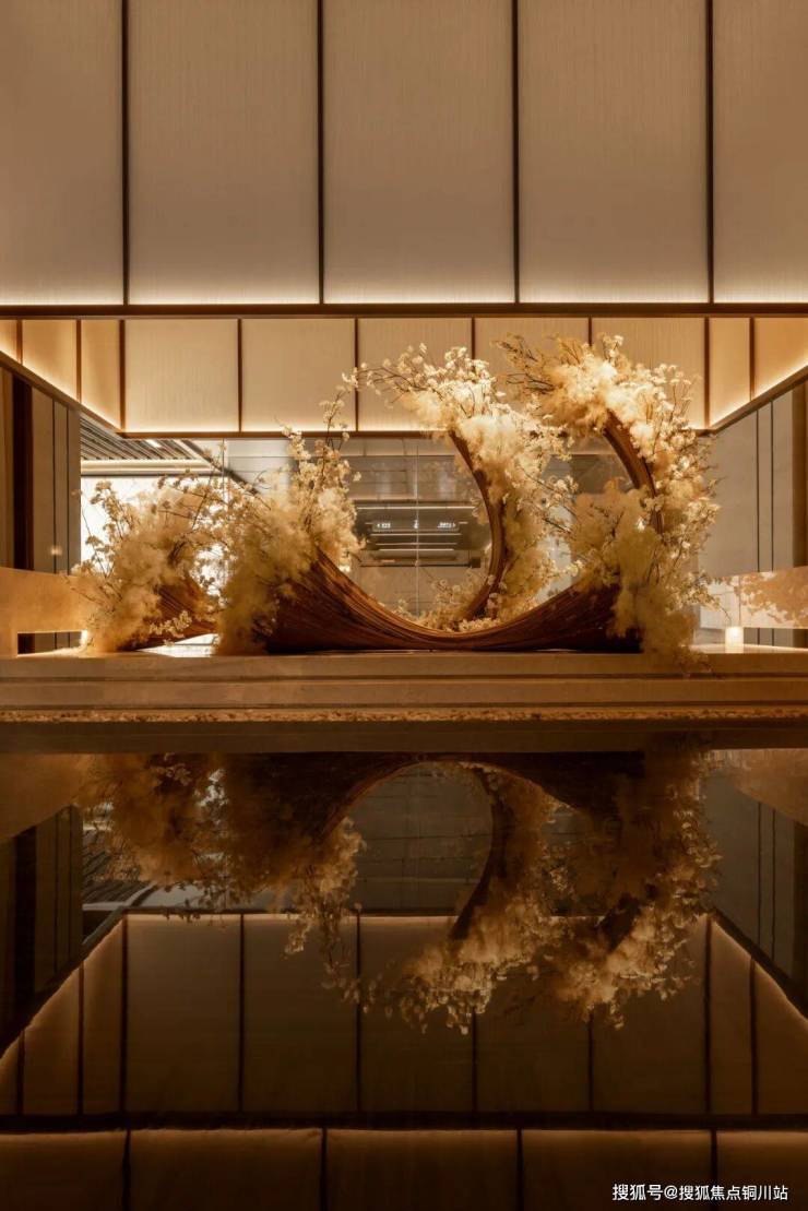 这种对审美的孜孜以求,延续到了约40m长、约4.8m高的大尺度界面门庭。苏州招商序在其设计上采用编织手法打造的“栖心之巢”艺术装置,不仅撑起了「天下四聚」的体面仪式,更升华为一段随着光影延时旋转的温度之旅。