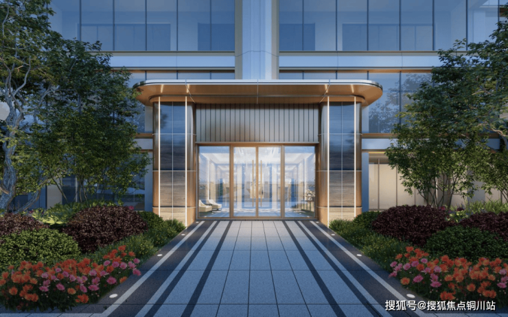社区主入口以约70米开阔尺度,展开一幅当代门庭画卷。设计灵感源自“龙鳞”,以常州首座流线型麟震景墙诠释东方意蕴——奢石、艺术玻璃与金属精细嵌合,形若展翼,静诉光影的故事。
