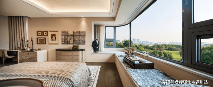 飘窗:部分大户型主卧套房打造270°转角飘窗,以全景视野融汇自然光景,将昼夜晨昏、四季流转温柔纳入私域。
