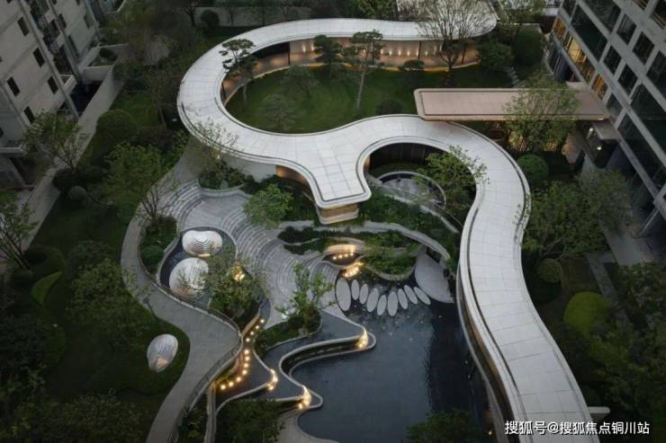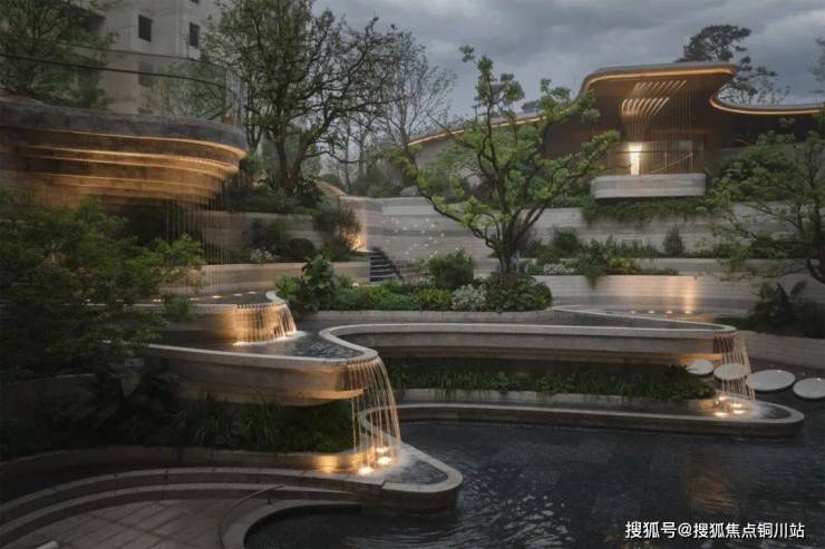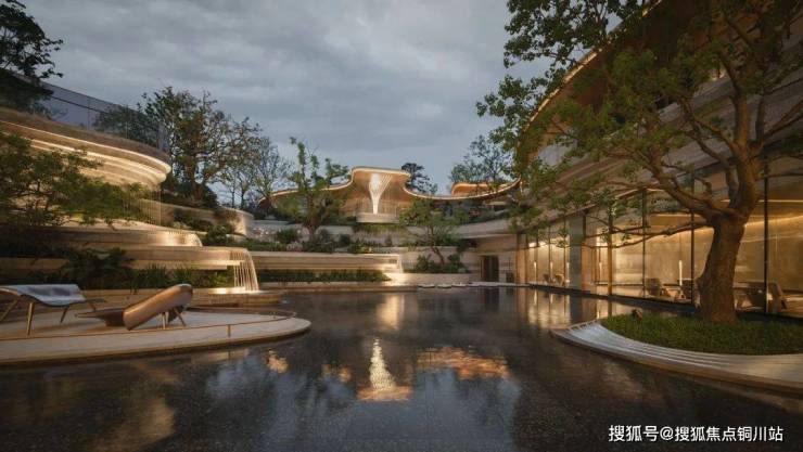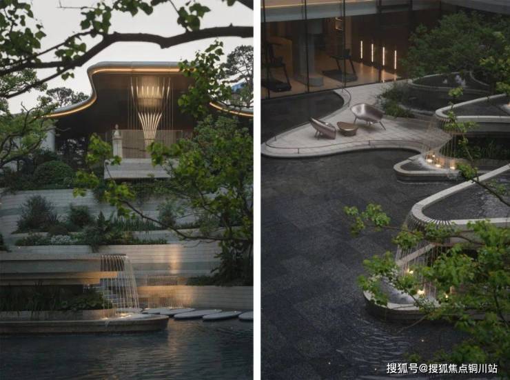 生活场景的营造,根植于对“自然栖居”本质的深刻理解。在紫樾府,我们摒弃了浮华的堆砌,转而向森林的内在秩序与灵动力量寻求答案。由怡境打造的浮岛森林式下沉庭院:以叠瀑、台地造景,形成“山下有院”的立体山水;负一层的全景观瀑会所围绕着下沉庭院展开,多层级的景观渗透,将多元化的生活场景扎根进森林的呼吸中。
