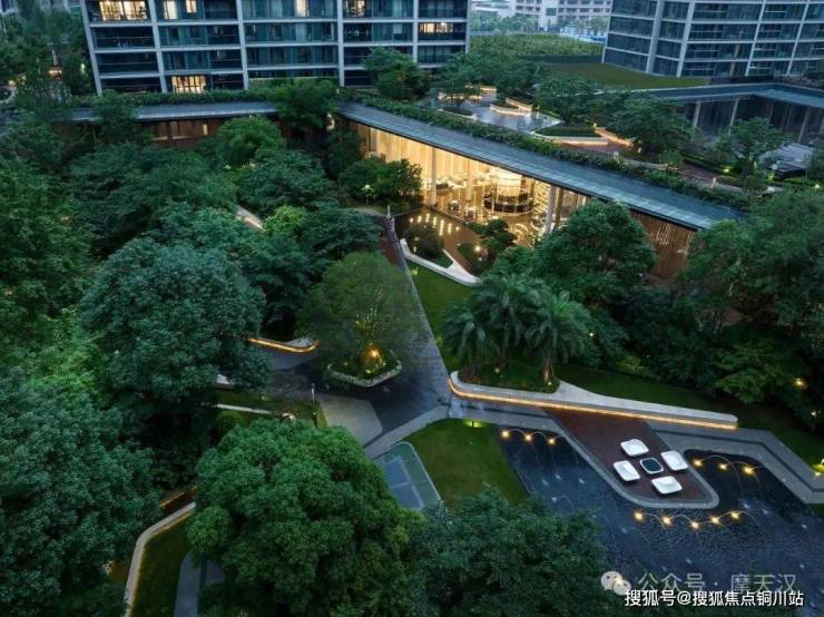 第一重园林是小区首层地面内部的园林绿化,精选了60余种树龄较长、树形较为美观的稀有品种来种植。