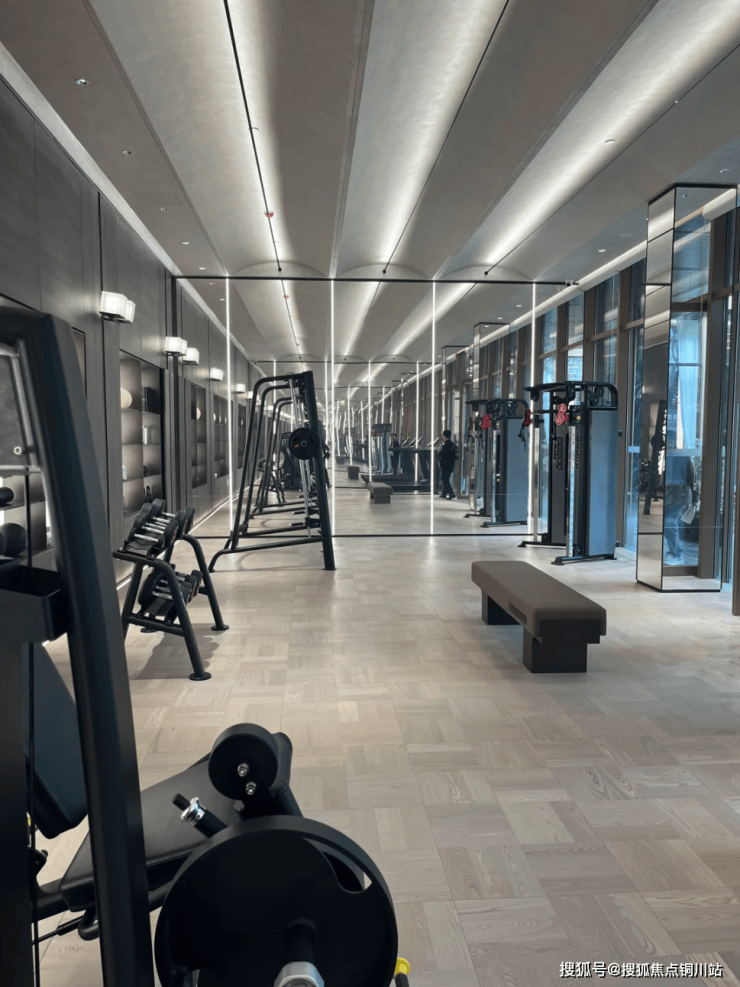 会所部分,有可供接待亲朋好友的会客沙龙,还有健身区,占地面积也很大,器材一应俱全,在自家楼下就可以撸铁。