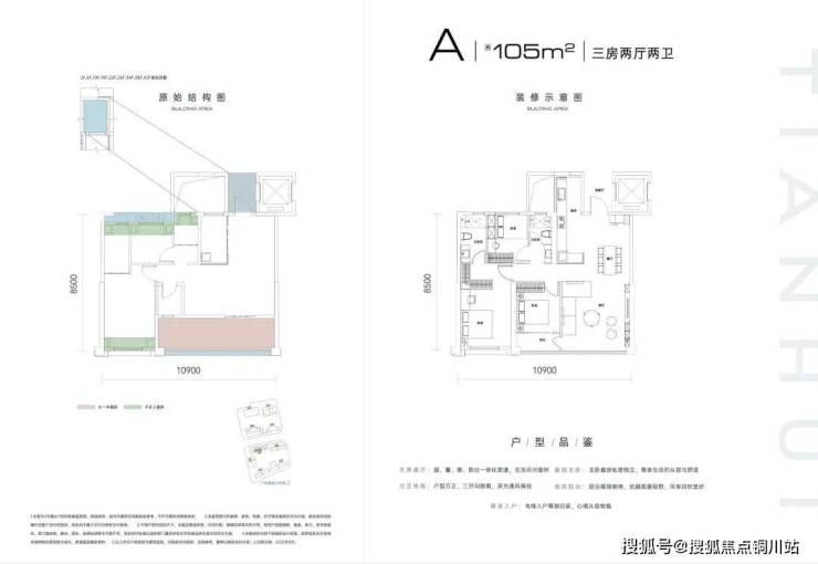 建面约105㎡,三房两厅两卫。