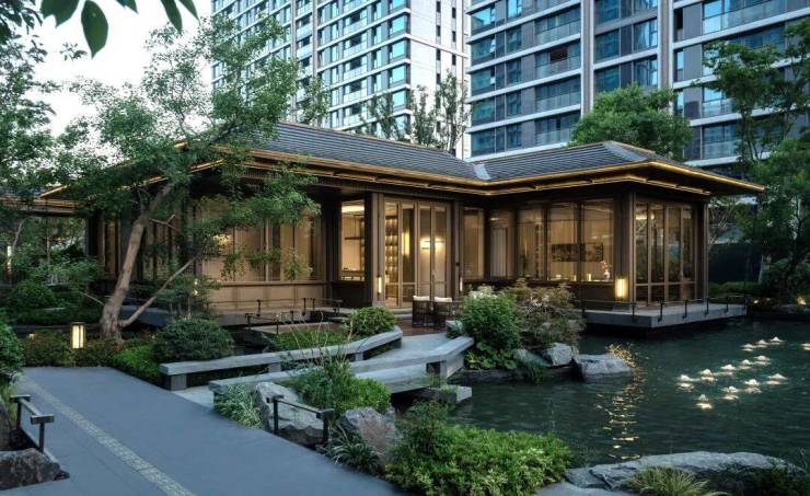 约1.5万㎡现代东方园林,不只是观赏的对象,更是生活的背景。从龙门飞瀑到浮潭茶室,从栖风折廊到下沉水院,每一次归家,都是一次心灵的漫步。