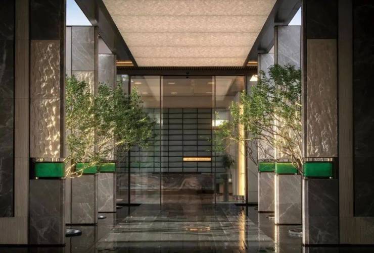 景观规划参考鳌峰书院布局,将景观空间分为四进礼序空间。艺术金属的现代质感与天然石的温润纹理在此完美邂逅。一道仪仗景墙与迎宾水晶相得益彰。柏坡黄置石点缀其间,与水景相映成趣。