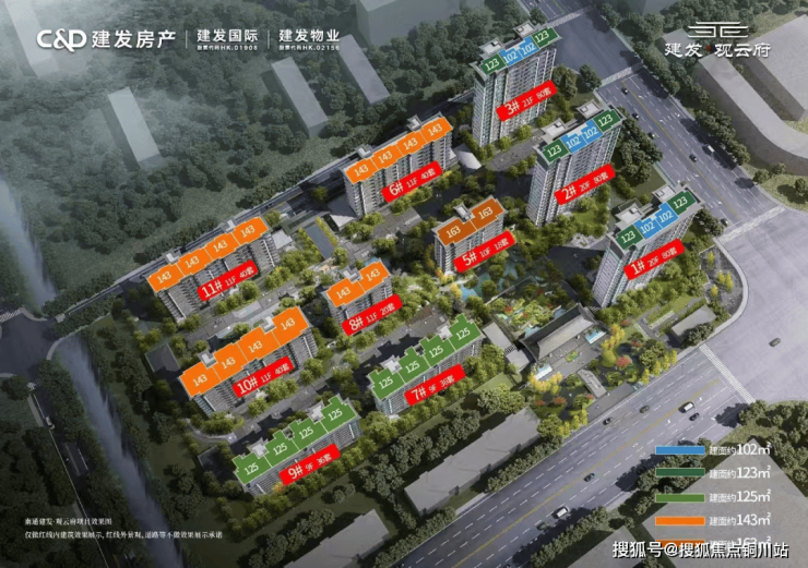 户型信息6:户型建筑面积为 102-163㎡,涵盖 3 居室、4 居室,有建面约 102㎡/123㎡两款高层户型,建面约 125㎡/143㎡/163㎡三款洋房户型。