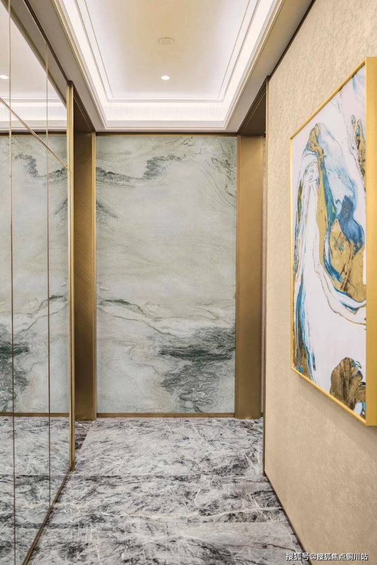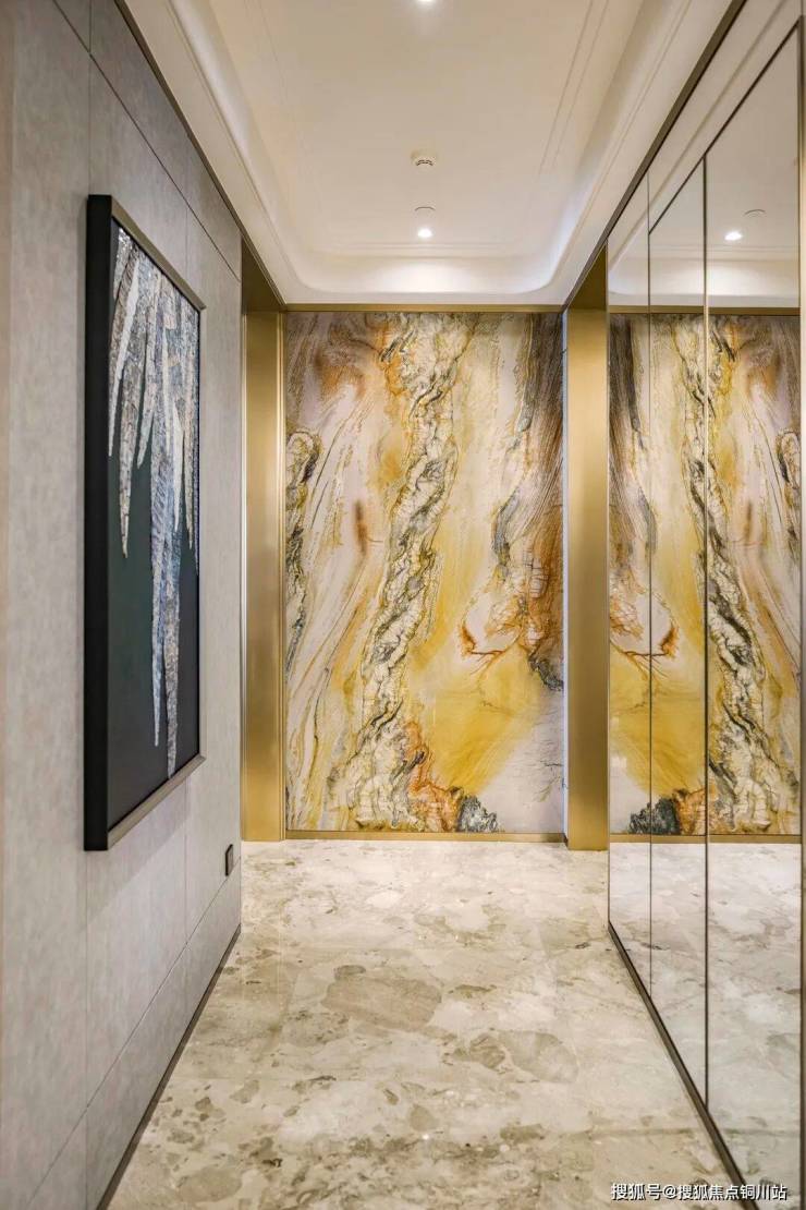 以半岛五號为例,采用煜丰实业定制的「双曲面拼花木作」工艺,实现2000㎡大堂木饰面拼接缝隙≤0.3mm,又如太原星河湾,石材拼花采用航天激光定位技术,每平米精准镶嵌238块玛瑙,实现"发丝级"密拼。
