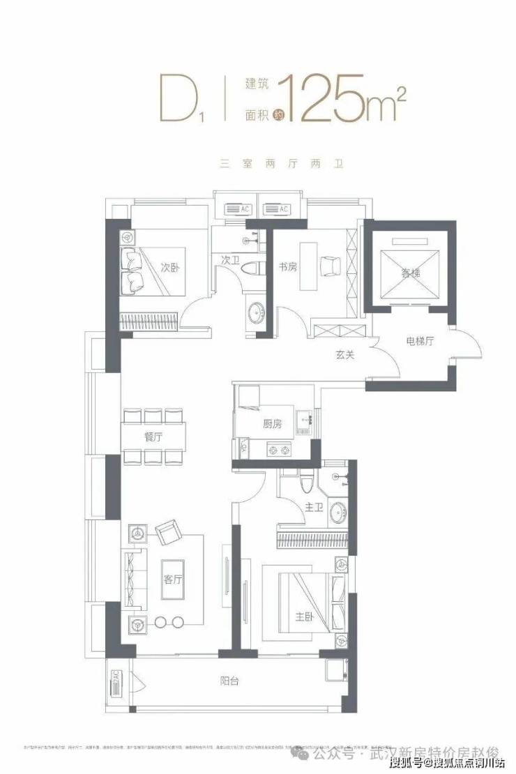 125㎡边户户型项目明星绝版户型,270°采光,横厅设计,电梯入户。