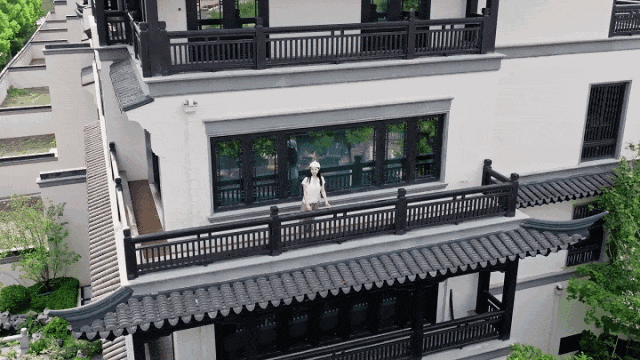 整体立面复刻江南中式典型的青瓦白墙,其中颇为重要的瓦作,特别采用杭州西溪雲庐同款小青瓦,包括屋面瓦、花边滴水、屋脊、戗角等,而这部分工艺也全部出自香山帮匠人纯手工打造。
