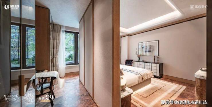 值得一提的是,两个南向卧房拥有中式露台,内可观园景,外可观湖景,是真正的绝版级景观视野。